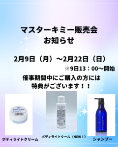【2月イベント】マスターキミー販売会開催のお知らせ