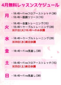 皆様のご参加を心よりお待ちしております。こちらの無料レッスンの時間帯を目安にお越しいただいてもOK、トレーニングの合間に取り入れていただいてもOK
